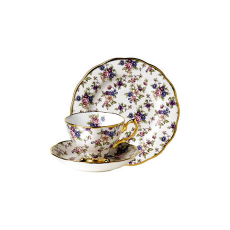 Необыкновенной красоты шикарный набор, состоящий из тарелки, блюдца и чашки, из тонкого фарфора. Предметы набора оформлены в стиле английского дизайна, каждый предмет украшает изящный рисунок нежных цветов и эффектный золотой ободок. Такой набор станет не только украшением сервировки любого стола, но и отличным дополнением вашего интерьера. Если вы цените красивую и качественную посуду, то вам необходимо купить фарфоровый набор для своего дома! Количество предметов: 3 (чашка, блюдце и тарелка 20 см). Материал: фарфор. Производитель: Royal Albert, Англия.