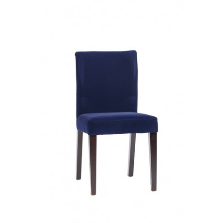 Велюр и дерево – нестандартное сочетание, которое скорее характерно для антикварных предметов мебели, нежели для современных интерьерных деталей. Этот стул имеет мягкую спинку и сиденье, стул обит велюром глубокого ультрамаринового цвета. Ножки сделаны из дерева шоколадного оттенка. Интересно, что передние ножки стула стоят прямо, а задние – словно стремятся вперед, это придает стулу оригинальности.