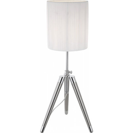 Настольная лампа для интерьеров в стиле минимализм или лофт. Ничего лишнего, только металлическая тренога в роли основания и поддержки и воздушный полупрозрачный абажур белого цвета.