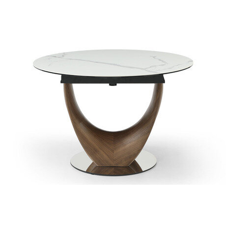 Ищете обеденный стол, который станет центром притяжения в интерьере, но не займет много места? Раздвижной стол Triumph решает эту задачу: компактная круглая форма диаметром 120 см легко трансформируется в овальную столешницу длиной 180 см для большой компании. Минималистичный дизайн с эффектной керамической поверхностью под мрамор и деревянным основанием впишется в современный интерьер площадью от 14 м².Три главных преимущества: