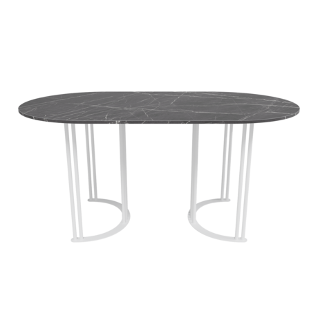 Обеденный стол овальный Violur 160 с металлическим белым подстольем и столешницей тёмный мрамор
