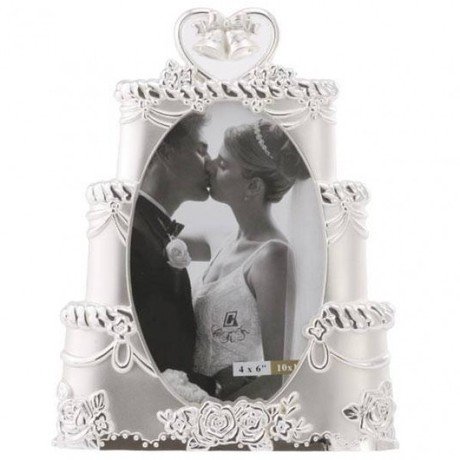 Это оригинальная фоторамка в форме торта для овальной фотографии 10*15 см. Объемный дизайн в качественном исполнении делает металлическую фоторамку размером 20*16 см отличным свадебным подарком для бесценных воспоминаний на любимой фотографии.