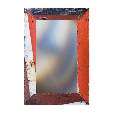 Зеркало выполнено из фрагментов настоящего рыболовецкого судна, возраст которого 20-40 лет. Окрас сохранён оригинальный.