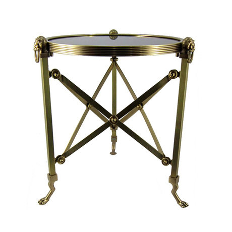 Столик из коллекции Allerton выполнен из состаренной латуни. Столешница выполнена из плотного черного стекла.