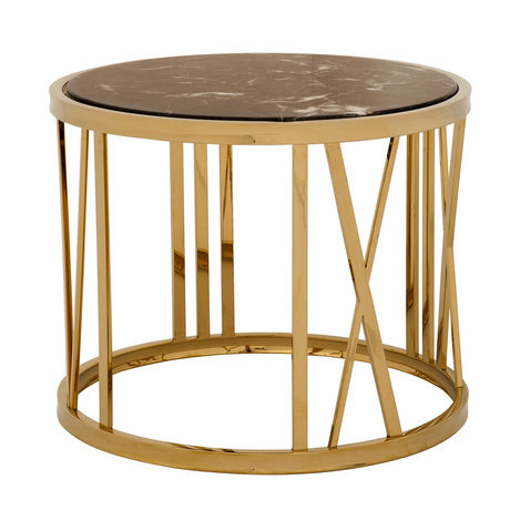 Приставной столик Side Table Baccarat на металлическом основании золотого цвета. Столешница из мрамора коричневого цвета.